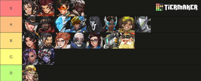 OW シーズン1のキャラTier表。日本サーバーのマスターからダイアモンドを想定(ミッドシーズン後)